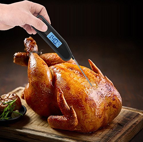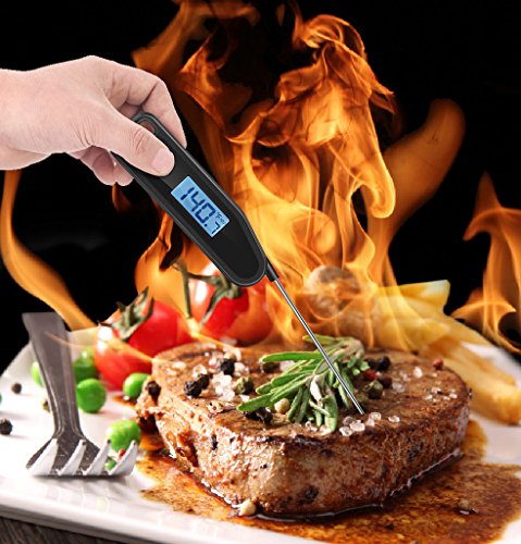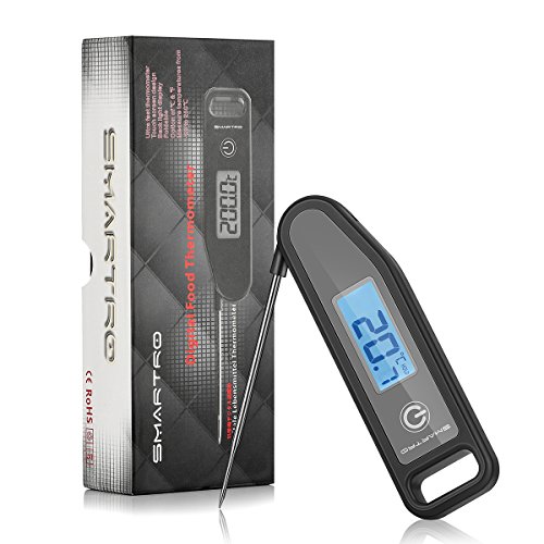 Meat Thermometer, SMARTRO Digital Food Cooking Thermometer with Instant Read Blue Backlit LCD, Best for Candy, Kitchen, Milk, BBQ Grill Smoker (Black)