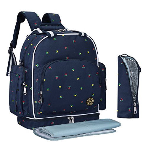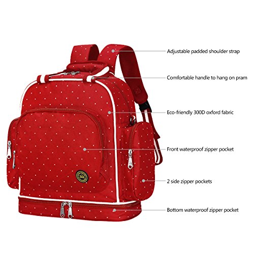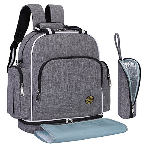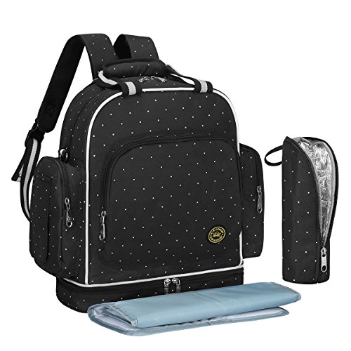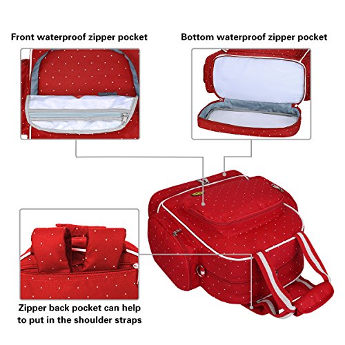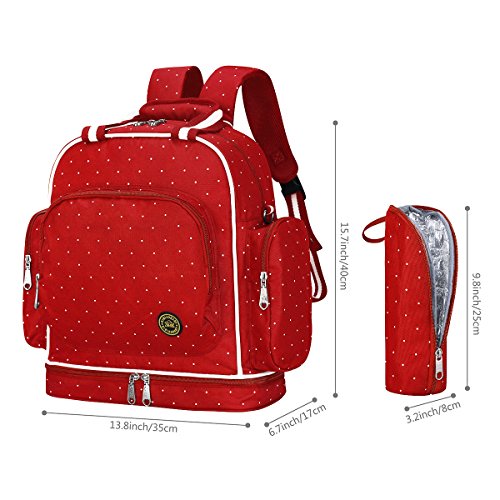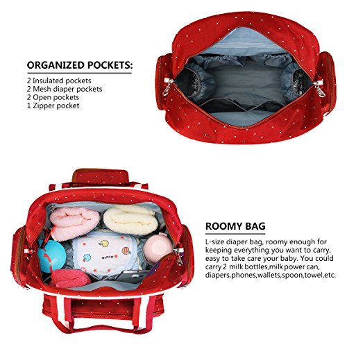 With 14 Pockets: 3 insulated bottle holders, 2 super Waterproof PEVA Pockets for wet items; It's a big diaper bag for endless organization options, so you could organize all your supplies and your baby's supplies with ease, Diaper bag size (inches): 13.8 (L) x 15.7 (H) x 6.7 (W).