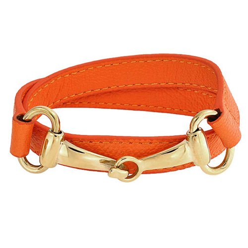 -. Title : ブリングジュエリー オレンジ 本革製 金メッキ ステンレス スチール ホースビット 二重 ラップ ブレスレット赤