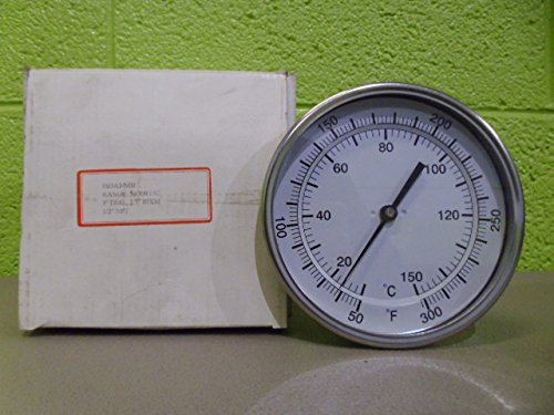 PIC Gauge B5A2-MM Stainless Steel Bimetal Thermometer with Adjustable Angle, 5" Dial Size, 2-1/2" Stem Length, 50/300° F and 50/300° C Temperature Range
