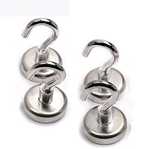 BEST MAGNETIC HOOKS & ORGANIZER Super-Strong-Small Hook Powerful Heavy Duty Neodymium Magnet-Great For Tools Keys Towels, Utensils And Will Not Scratch / Silver / 4 Pieces (D25mm(40LB))