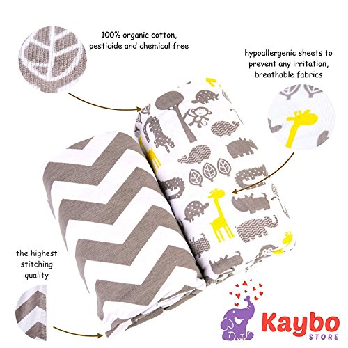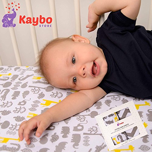 WHY WE'RE DIFFERENT: Handpicked and carefully checked, the materials are only top quality, healthy and safe for your kids. Kaybo Store crib sheets provide a good mattress coverage while being soft and pampering your little one day after day! They are strong, sturdy and easy to put on. The baby crib and toddler bed sheets fit tightly for a safe and restful sleep. WHAT YOU GET: 2 x Fitted crib sheets Material: 100% high quality jersey knit cotton Dimensions: 52" x 28" x 9" Style Color: White and grey chevron grey jungle animals and yellow giraffes on a white background Weight: 1.2 lb Packaging: Nicely designed recyclable cardboard box, 8.7"x7.5"x2.6" 1 x eBook "Kaybo's Happy Kids Digital Guide" for the perfect parents OUR MISSION: We believe in making everyday life easy and fun and that in helping you to do this in your own household, we are creating HAPPIER MEMORIES AND HAPPIER FAMILIES. We are real people who use our own products for our little ones every day. We expect the best for our family and want the same for yours. 0 |