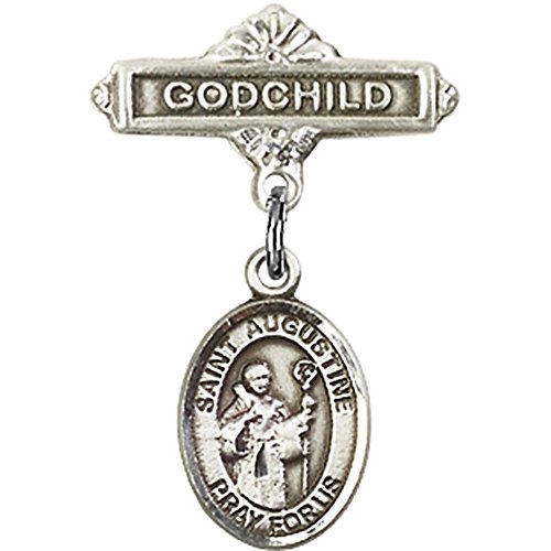 -. Title : Sterling Silver Baby Badge with St. Augustine Charm and Godchild Badge Pin 1 X 5/8 inches