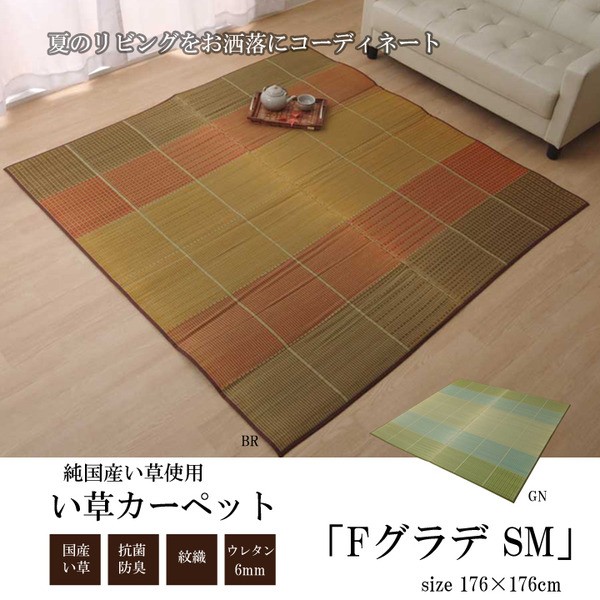 【商品名】い草ラグ 国産 ラグマット カーペット 2畳 正方形 グラデーション 『Fグラデ SM』 グリーン 約176×176cm (裏:ウレタン)