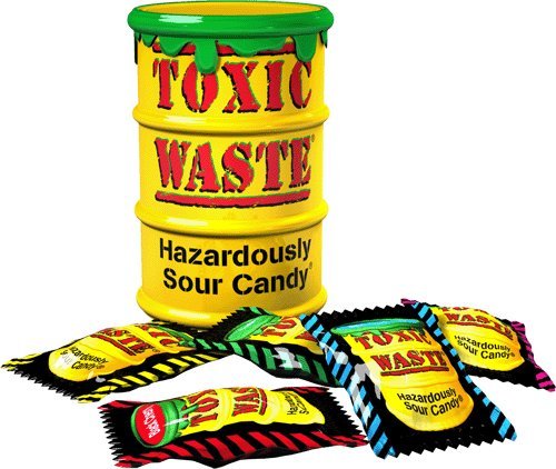 -. Title : Toxic Waste Hazardously Sour Candy Drum - 12 / Box