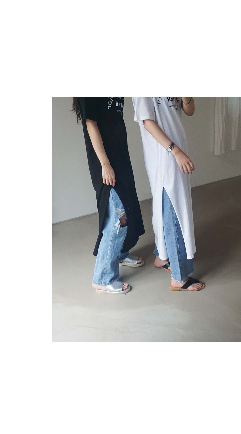 양 사이드에 슬릿을 주어 활동성은 물론 은근히 섹시함까지 더해진 제품이에요 간단한 외출복은 물론 여행갈 때 편안하면서 멋스러운 룩으로 좋은제품이에요-