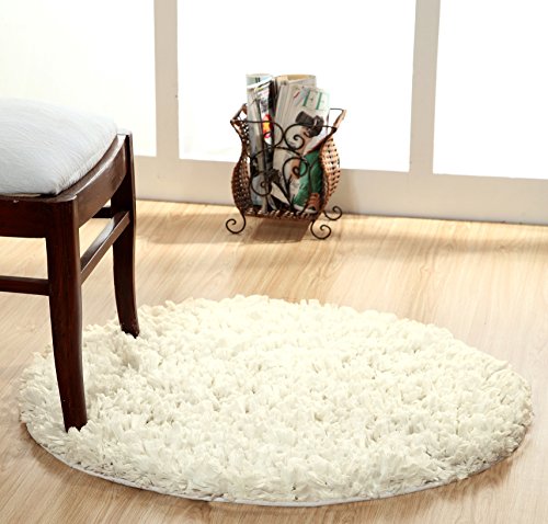 WARISI - Shag Collection - PAPERSHAG Area Rug (3-Feet - Round, Ivory)
