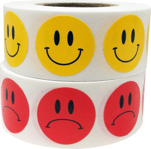 Smiley Face Frowny Face Stickers Yellow Happy Red Sad Labels For Teachers 3/4 Inch Round Circle Dots 500 Stickers Per Design 1,000 Adhesive Stickers