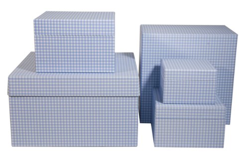 - Semikolon Square Nesting/Organizer Boxes, Set of 5; Blue Gingham
