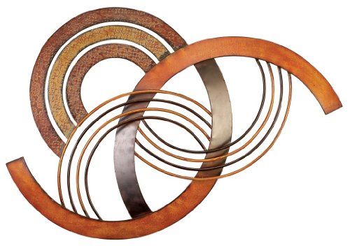 Item description: 38" contemporary copper and brown hue iron and metal wire abstract semi circle montage wall sculpture.