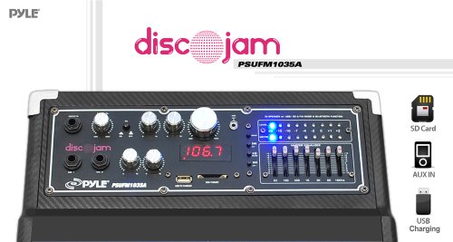 Pyle PSUFM1035A Bluetooth 1000 Watt 2-Way Speaker System with SD Card Reader, FM Radio, 3.5mm AUX Input and Flashing DJ Lights