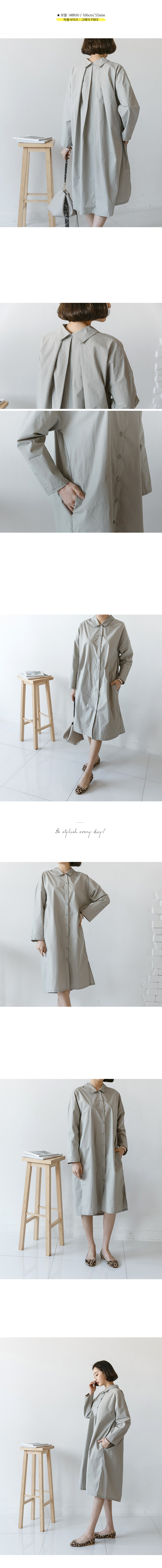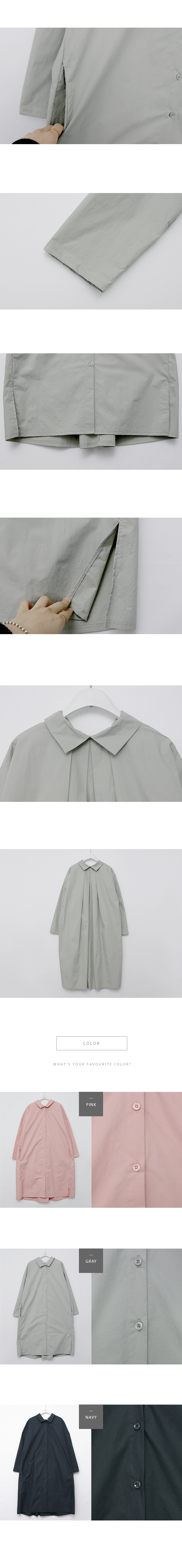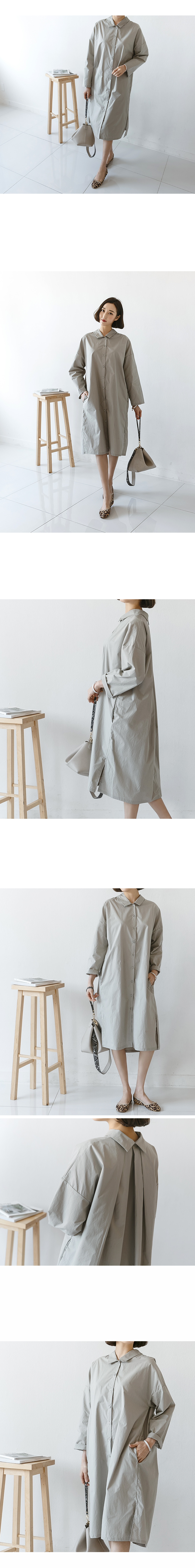 전체적으로 둥근 라인의 오버핏 셔츠 원피스로 뒷부분으로 넘어가는 핏과 뒷목선 아래로 잡은 주름으로 독특한 라인이 잡히는 디테일이 멋스러운 원피스예요