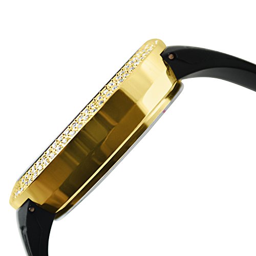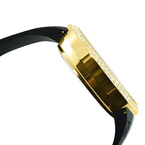 -. Title : Techno Pave Iced Out Bling Lab Diamond Gold Black Digital Touch Screen Sports Smart Watch Silicone Band
