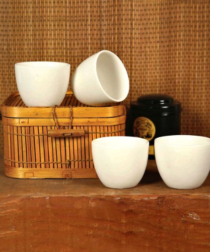 -. Title : Tea Cups in Bamboo Box - Set of 4 - White