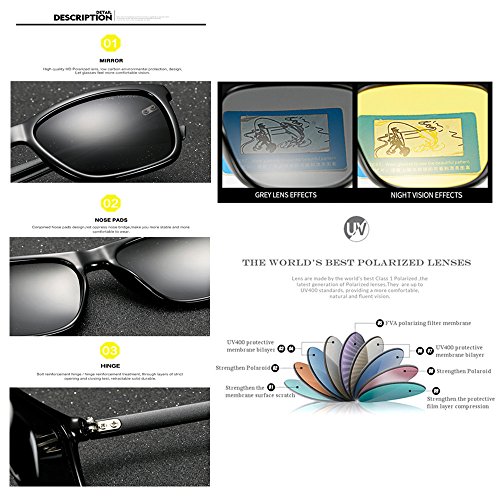 POLARIZED LENS- The polarized lens provide 100% protection against harmful UVA/UVB & UVC rays and protect eyes perfectly. SOLID FRAME- The frame is lightweight, fashionable and durable. High quality plastic frame is unbreakable.