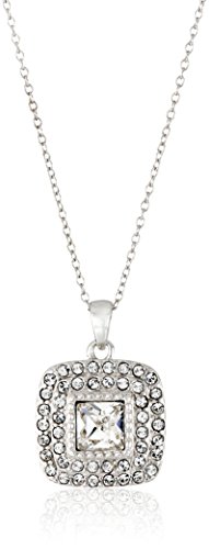 -. Feature : Necklace: 18"L x 0.99"H x 0.6"W; Earrings: 0.52"H x 0.52"W / Two-piece set in sterling silver includes cushion-cut pendant necklace with Swarovski crystal centerpiece and double halo and matching pair of friction-back stud earrings. / Imported / Earring Measurements: length - 0.5", width - 0.51" / Necklace Measurements: chain length - 18", pendant height - 0.94", pendant width - 0.65"