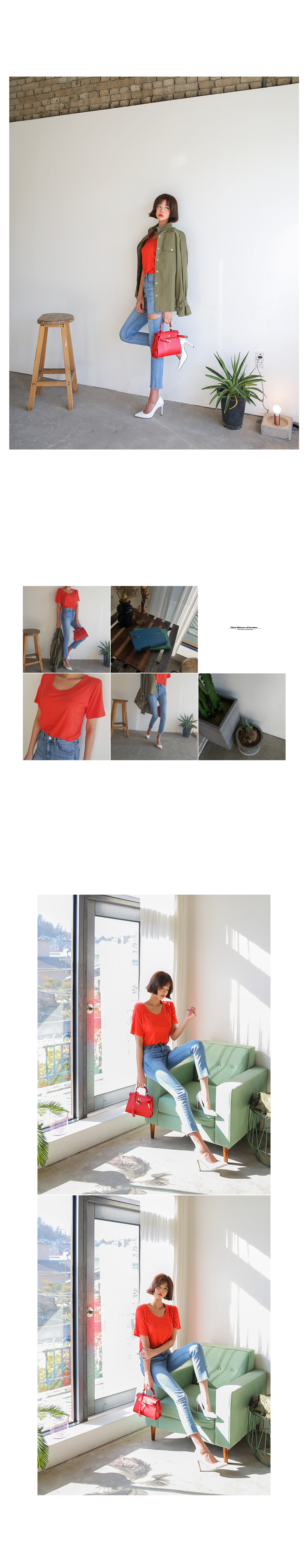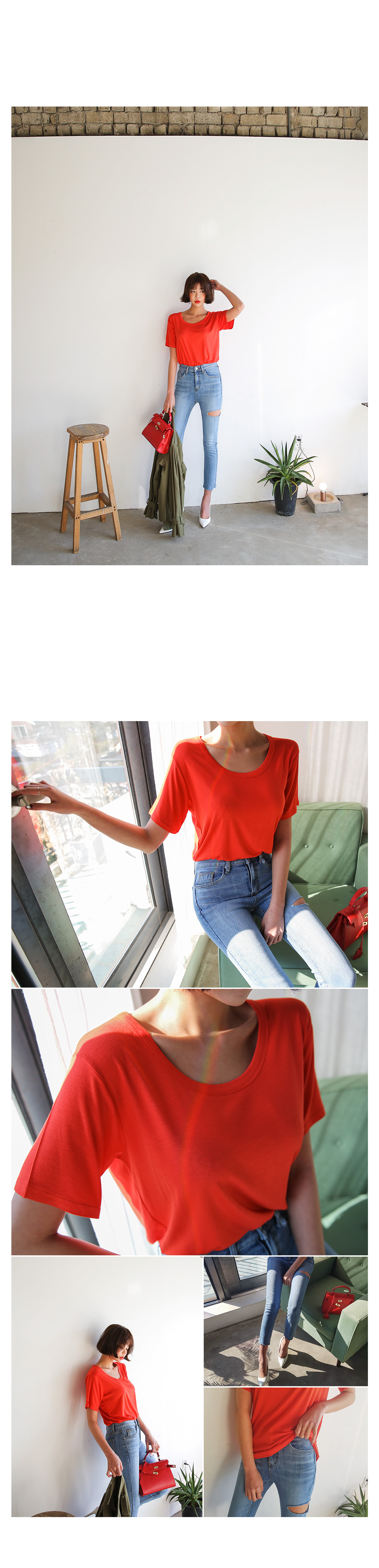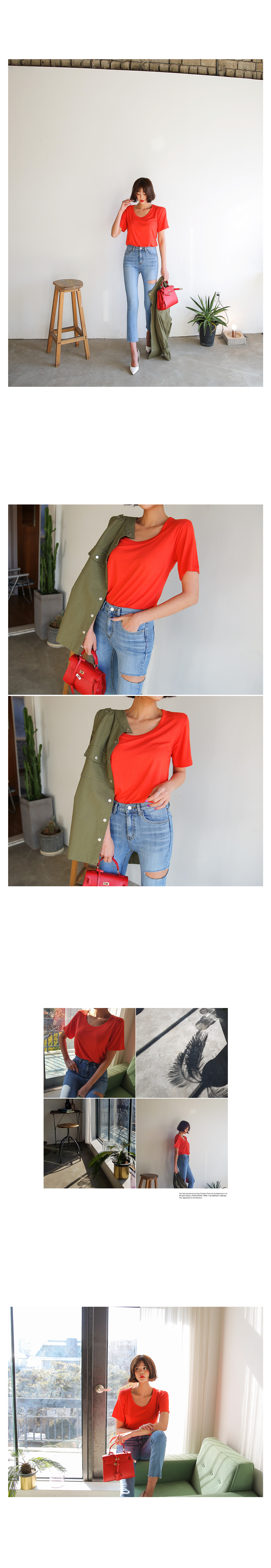 きれいなムードのラウンド半袖ティーシャツ紹介します。