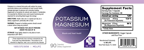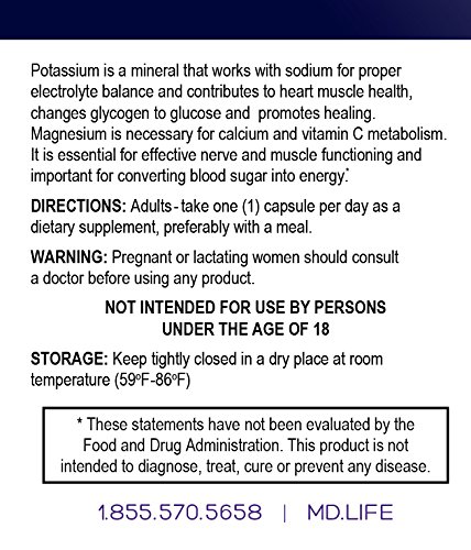 Save $$ MD Life Potassium Magnesium 90 Capsules Compare to Pure Encapsulations Magnesium