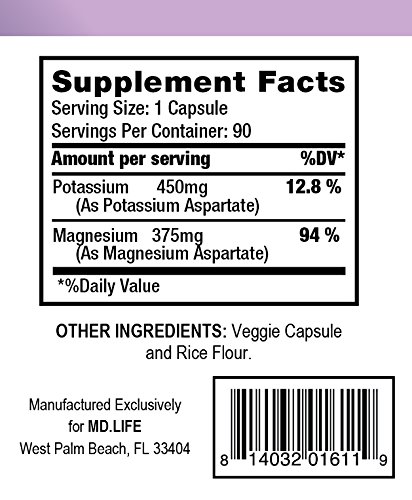 SAY GOODBYE TO MUSCLE SORENESS AND SPASMS! - Everyday is a new challenge and you must be prepared for it, not suffer from muscle spasms and soreness. Using the benefits of magnesium and potassium to relax your body and mind, MD.LIFE Potassium Magnesium will keep stress away and provide you the energy to fuel your active lifestyle. • AN OLD ENEMY OF STRESS AND FATIGUE - The benefits of magnesium are not a recent discovery. Essential for life and necessary for health, this extraordinary mineral will help your body perform well under stress and reduce symptoms like fatigue and muscles spasms. Release stress from your body and mind with this high absorption magnesium & electrolyte supplement that will not let you down! • RAPID RESULTS FOR ACUTE MUSCLE CRAMPS - It is well-known that muscle cramps are a common result of low levels of potassium in the blood. Having an optimum amount of potassium, MD.LIFE Potassium Magnesium is a high-absorption supplement that prevents hypokalemia and alleviates muscle cramps and tension. • NO-CHEMICALS FORMULA - No chemicals are required to relax your muscles and feel surprisingly fresh after the day's efforts. We believe that nature offers all the necessary ingredients for high-quality supplements that really improve your health, not compromise it. Therefore, MD.LIFE Potassium Magnesium contains no artificial additives or preservatives and is formulated with magnesium, potassium, and electrolytes for optimal muscle health and nerve transmission.Feature