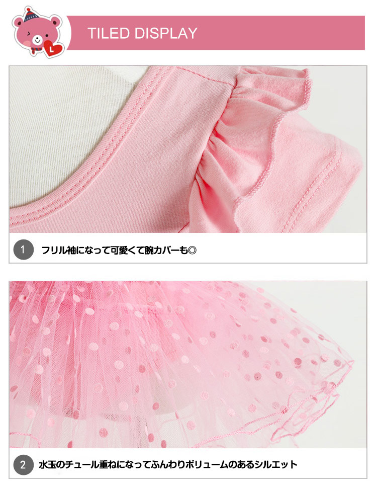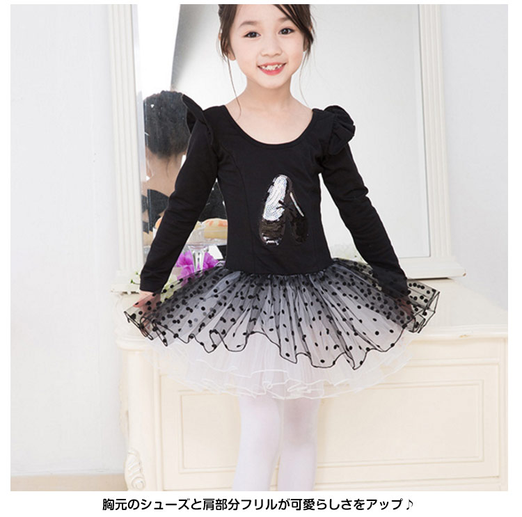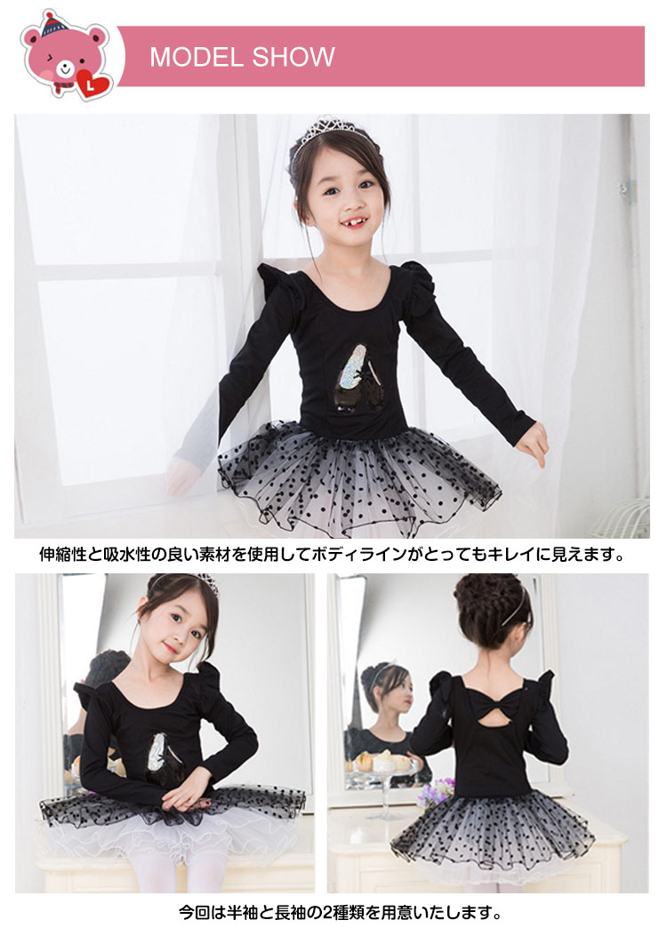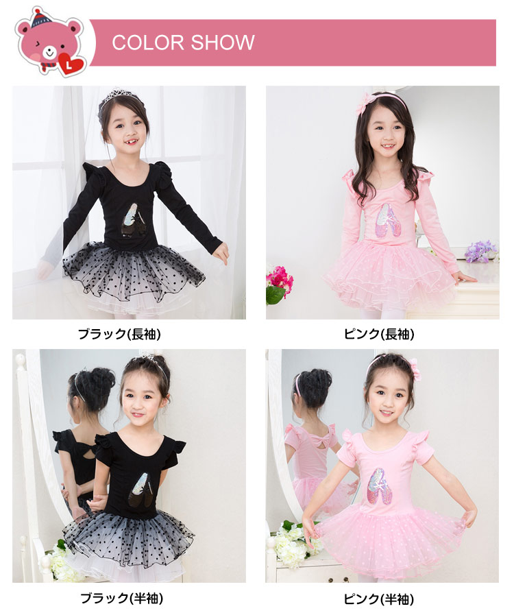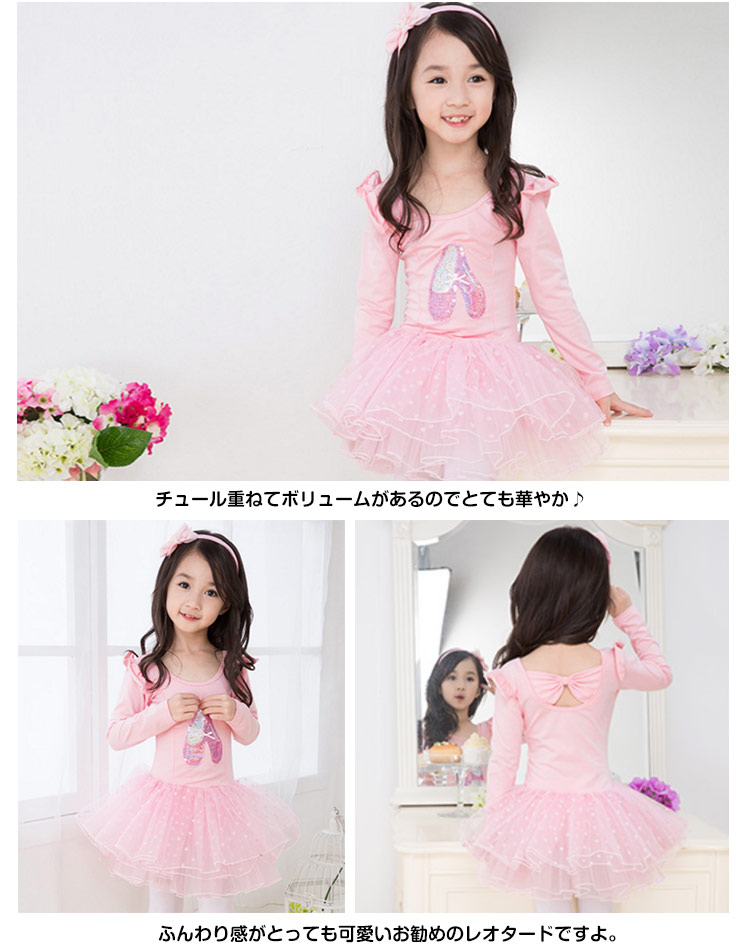 | 子供用ふんわりチュチュ付きレオタード。伸縮性と吸水性の良い素材を使用してボディラインがとってもキレイに見えます。今回は半袖と長袖の2種類を用意いたします。胸元のシューズと肩部分フリルが可愛らしさをアップ♪チュール重ねてボリュームがあるのでとても華やか♪ ふんわり感がとっても可愛いお勧めのレオタードですよ。可愛いシンプルなデザインですので、普段のお稽古や練習でレッスン着としてどんどんお使いください! | |