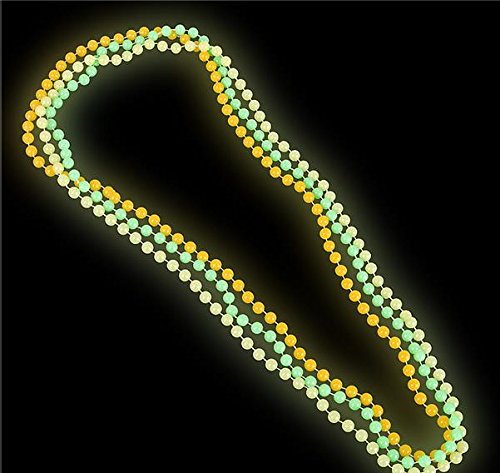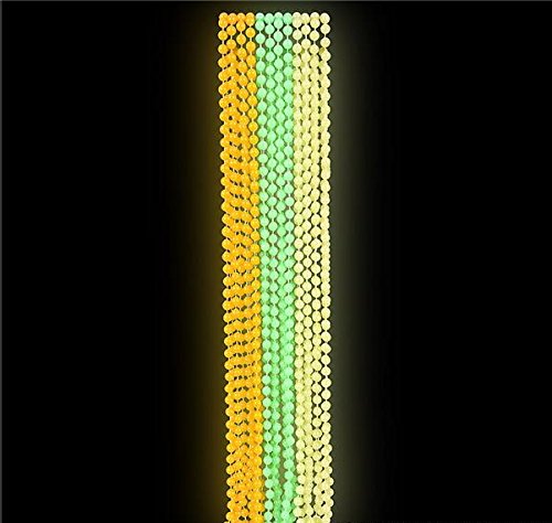 Turn the lights down low for maximum glow. These party beads, and beaded necklaces glow in the dark, perfect for adding a radiant touch of fun for New Year's Eve, Mardi Gras, Halloween, and beyond.