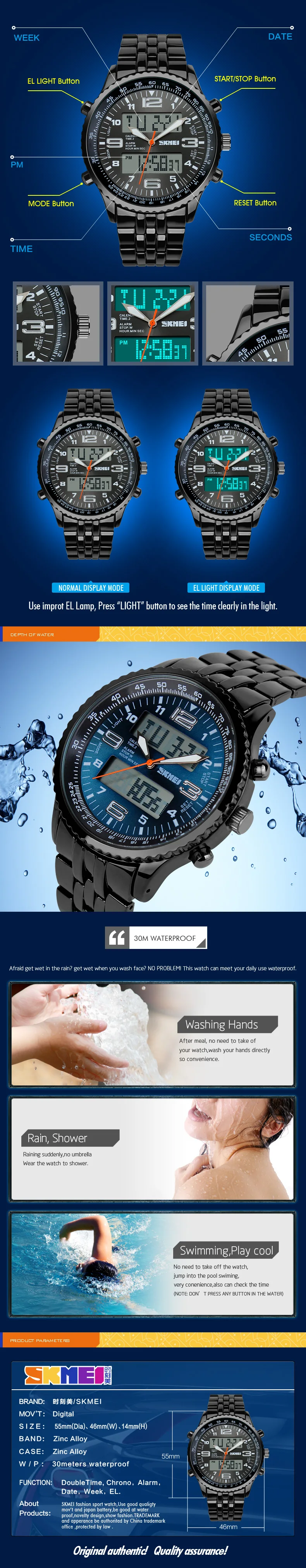 Feature:Alarm,Back Light,Water Resistant,Complete Calendar,Multiple Time Zone,Chronograph,Auto Date,LED display