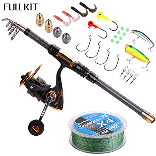 -. Title : Supertrip Telescopic Fishing Rod and Spinning Reel Combos Full kit ,Travel Portable Fishing Pole Combo with Fishing line Hooks Lures ,Saltwater Freshwater Kit Fishing Rod Kit