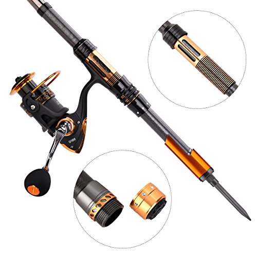 -. Feature : FULL KIT: 1 TELESCOPIC FISHING POLE + 1 GF4000 FISHING REEL + VARIOUS FISHING LURES+ FISHING HOOKS + SOME NESSARY ACCESSORIES / Full kit is special made for novice,including nessary accessories for fishing.You can use it combos without buying any other accessories from anywhere / Perfect elasticity,high density Carbon fiber mixed with fiberglass make your fishing pole hard & durable.Stainless Steel Hooded Reel Seats is anti-seawater corrosion. The telescopic fishing rod is portable,and closed length design is convenient carrying around.Power:Medium; Extended Handle. / Instant anti-reverse;CNC Right/Left inter-changeable metal handle;Power drive gear equipped for high strength. More short body with large spool and large line capacity.Line capacity: Mm/m 0.30/200 0.35/160 0.40/120; LBS/YDS 12/180 14/140 16/100. Model: GF4000;Ball Bearings: 6+1; Gear ratio: 5.2:1. / We love our customers and 12 months warranty provided.If any problem,please contact us firstly and our customer service will solve it for you soon.KINDLY NOTE:FISHING ROD HOLDER IS NOT INCLUDED.Want to buy fishing rod holder?Please search the ASIN:B016ZHIR1K OR B016QM906U