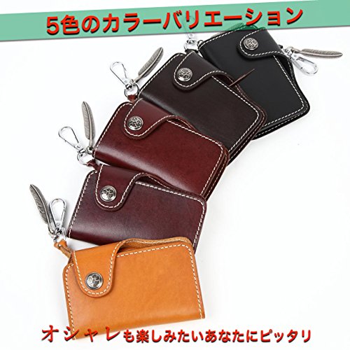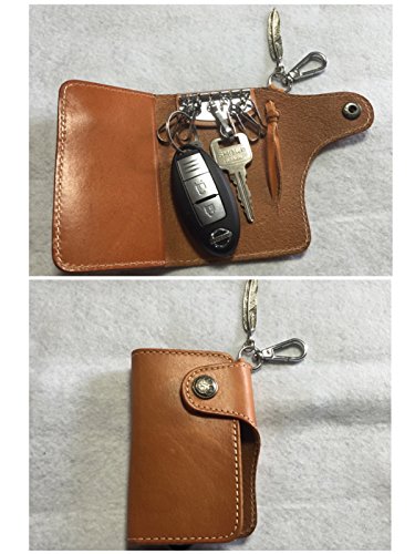SORASION Leather key case handmade six consecutive smart key corresponding carabiner with Indian cowhide leather (Camel)
