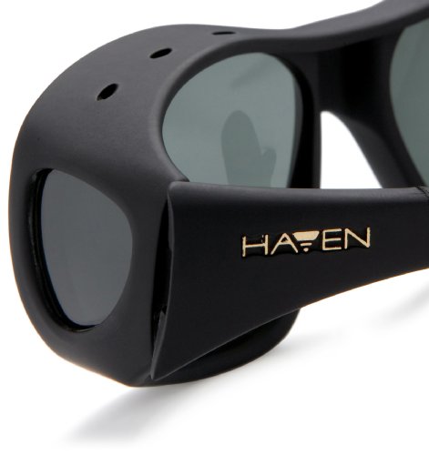 Amazon.com Haven Fits Over is a stylish and sensible way to protect your eyes from harmful UVA and UVB rays while still wearing your everyday prescription eyewear. The lightweight nylon frame has BendToFit technology at the temples to ensure proper comfort and durability, while the polarized lenses promise optimal optical clarity. Includes a protective case for storage. 0
