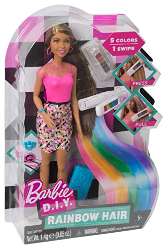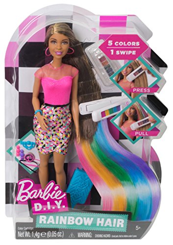 Put a rainbow of color in Nikki doll’s hair -- with one simple swipe! Simply load a section of Nikki doll’s long hair into the hair tool and swipe to instantly change the color. With five vibrant hues, the hair styling options are endless! Color one section or every hair on her head to match the moment and the mood. Then style even more with the enclosed hair accessories that include three barrettes (one pink, one purple and one blue), hair bands and a brilliant blue brush. When ready for a new look, wash it out and start anew -- girls will have so much fun styling and restyling Nikki doll’s hair. Dressed in a shimmery pink top and graphic print skirt, she is ready to color any event fun! Pink earrings, a blue bracelet and black shoes complete the amazing look. Girls will love creating new looks in an instant -- over and over again! Includes Nikki doll wearing fashion and accessories, one hair tool, one rainbow color cartridge, three barrettes, two rubber bands and one brush. Doll cannot stand alone.Feature
