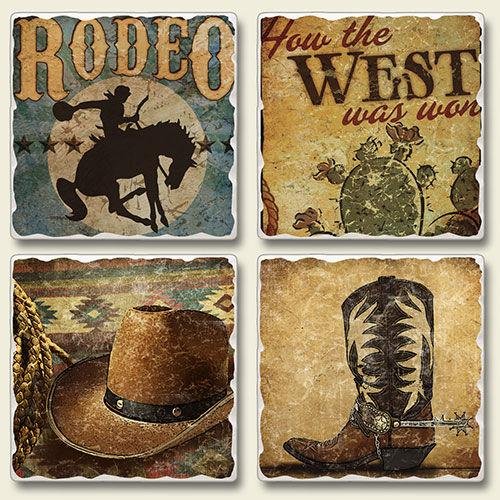-. Title : Highland 05-00070 Western Rodeo Set Of 4 Coasters
