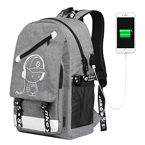 -. Feature : LARGE CAPACITY WITH MANY POCKETS - Main compartment + laptop comparment+ front pocket + bulid in zippered pocket + 2 side meshed pocket with buckle closure for water bottle and umbrella. Weight 0.7KG; Dimensions: 17.7x 11.8 x 5.5 inch; Suitable for a 15 inch laptop. / ALWAYS USE THE BEST QUALITY MATERIAL - Selection of wear-resistant nylon fabric and heavy-duty inner lining, durable zippers, adjustable padded shoulder straps and free gift safety lock. Using environmental luminous powder, in natural light or light irradiation, it will show luminous effect. / USB CHARGING PORT: You can easily and conveniently charge your phone, tablet and other devices without opening up the backpack. Put your Power Bank into backpack and connect internal USB cable, then let your charging cable insert external USB port to connect your electronic device. / THE BEST CHOICE - The backpack with a variety of young and trendy personality elements. Whether you go to work or use as a school bag, laptop bag, travel bag, this unisex style bag is the best choice, let you stand out in a crowd with our special luminous backpack. / QUARANTEE - Quality problems occur within one year replacement, lifetime warranty, if you're not completely satisfied, just CONTACT US and we will give you a 100% refund within 90 days of purchase. It is our intention to offer the BEST customer service on Amazon.