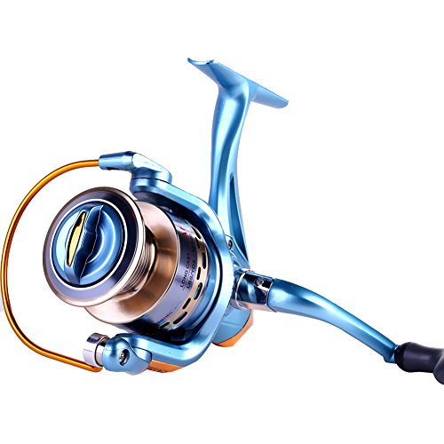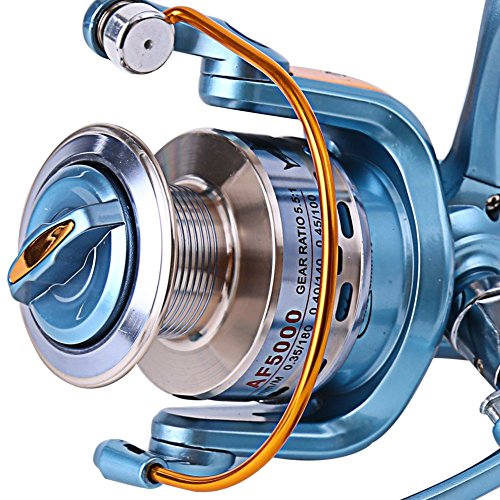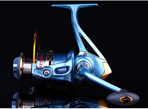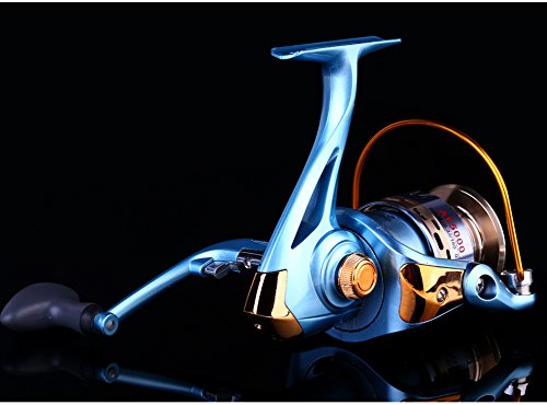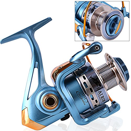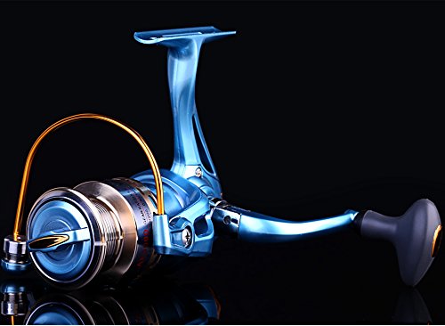 -. Feature : Spinning fishing reel Computer-balanced rotor in strong aviation composite material. / Interchangeable quick-folding handle made of aluminum diecasting material. / Spring ball trip configuration, folding and portable suitable for saltwater and freshwater fishing reels. / Precision forged aluminum spool with double anodizing. fashion and elegant reels for fisher. / Blue Bearing:11+1BB Gear Ratio:5.5:1, Green Bearing:11+1BB. S.S main shaft with perfect anti-corrosion&anti-impact performance.