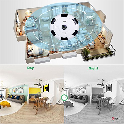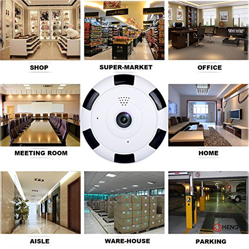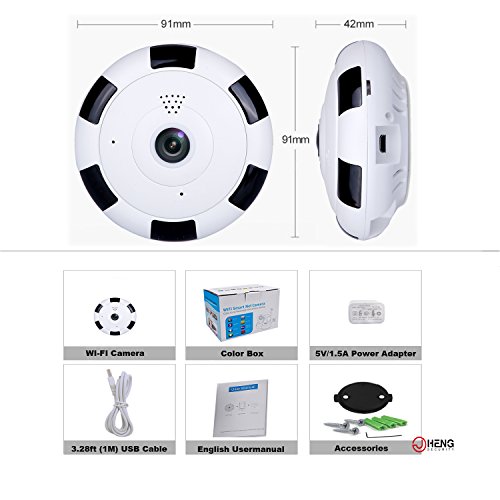 -. Feature : Plug and Play, Easy set up the Wi-Fi connection. Support 2.4G WIFI, it CAN'T support 5G. Support iOS and Android only. Prepare the Quick Start Guide for customer (paper version and digital version) / 720p HD Wi-Fi Camera, the network camera will auto switch to night vision; Fisheye 360° panoramic view angle, monitor the entire room (10M*10M)100 ㎡ with no blind area, applicable to different monitoring scenarios, supporting 5 different viewing modes / Support Remote Control, Two-Way Audio, whenever you go you could monitor your surveillance place and speak to it under WIFI environment through App (Smart phone for IOS and Android only, PC for windows only) / MOTION DETECTION AND LOOP RECORDING - Whenever any motion is detected, dome camera sends alert on user's mobile phone or with sound notification. It also auto recovers the earlier video files when TF storage room is full.(max support 64 Gb, approx. 30days recording, TF Card NOT included) / Easy to install: The camera will be installed on ceiling or wall, all the accessories will come with the WIFI Surveillance Camera, no need to buy extra bracket to mount it
