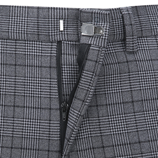 - 글렌 체크 패턴의 모던한 남성 팬츠.