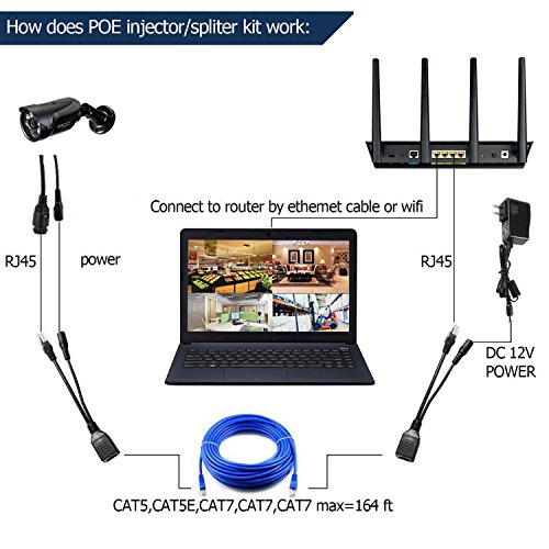 -. Title : Ipccam Bullet IP Camera POE Injector and Splitter Kit Easy Installation Outdoor Indoor 65ft Infrared Radiation IR Night Vision IP66 Waterproof Support Phone Pad PC Remote View Black