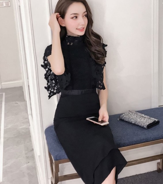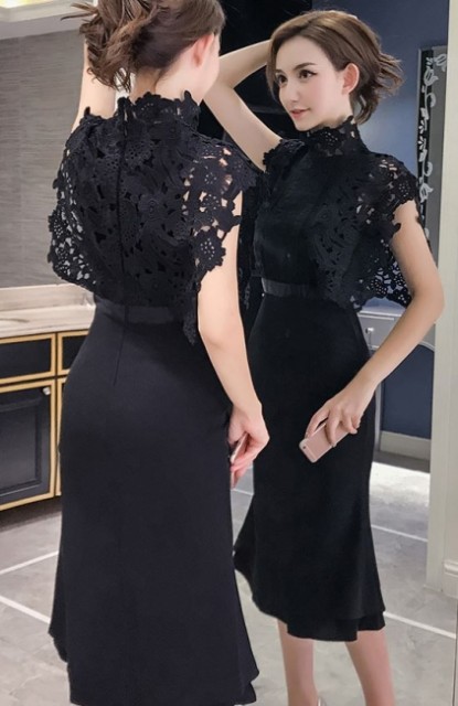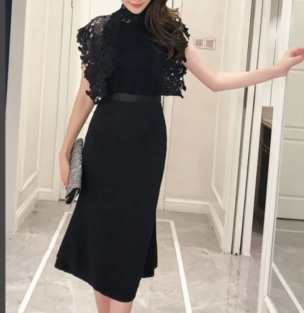 袖フリルとレースがエレガントなパーティードレス☆