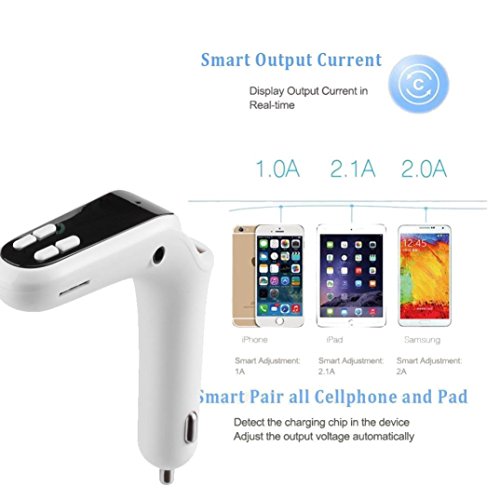 ▶Brand new and high quality ▶Fast and Intelligent Charger: This Bluetooth Car charger comes with USB output 5V/2.5A. It is able to charge devices fast. It will automatically adjust output based on the device you have ▶Music Player and FM Transmitter: The Car FM Transmitter is able to play the musics on your phone via FM radio or Aux-in port. It supports MP3, WMA, WAV and FLV. With TF card slot and USB port, it is also able to play and transmit music files from TF card or USB drive. ▶Hands Free Calling: Simply pair this car transmitter with your phone. You will be able to answer/reject/end calls easily. Hands free function lets you drive safely ▶Great compatibility: Compatible with all bluetooth-enabled devices, such as iPhone, Ipad, Samsung, LG, HTC smartphones, tablets, etc. ▶Noise Reduction Technology: With CVC technology, this car FM transmitter provides you with clear phone calling and let you enjoy beautiful music. It also supports A2DP (Advanced Audio Distribution Profile). ▶Material: Plastic ▶Rated working voltage:12V-24V ▶USB output:5V/2.5A ▶Format supported: Mp3 WPA FLV WAV ▶Bluetooth version:4.2 EDR ▶Bluetooth sound processing:A2DP (Advance Audio Distribution Profile)function support ▶Bluetooth transmission distance: 10M ▶Effective distance of Bluetooth microphone:0-2M ▶FM Range: 87.5-108 MHz ▶FM mode: Stereo digital PLL frequency locking> ▶Package Includes:1 x Car Charger 1 x Maunal 0