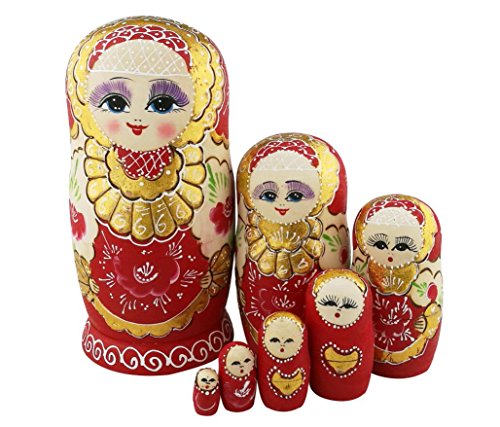 -. Title : Beautiful Red and Gold Little Girl Wooden Handamde Russian Nesting Dolls Matryoshka Dolls Set 7 Pieces For Kids Toy Birthday Christmas New Year Gift Home Decoration