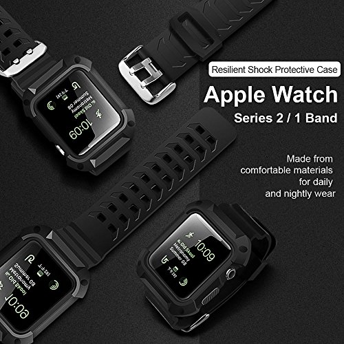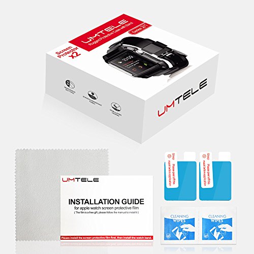 Apple Watch Case Series 2 Series 1, UMTELE Rugged Protective Case with Strap Bands for Apple Watch Series 2 Series 1 Sport Edition 42mm Black (Screen Protectors Included)
