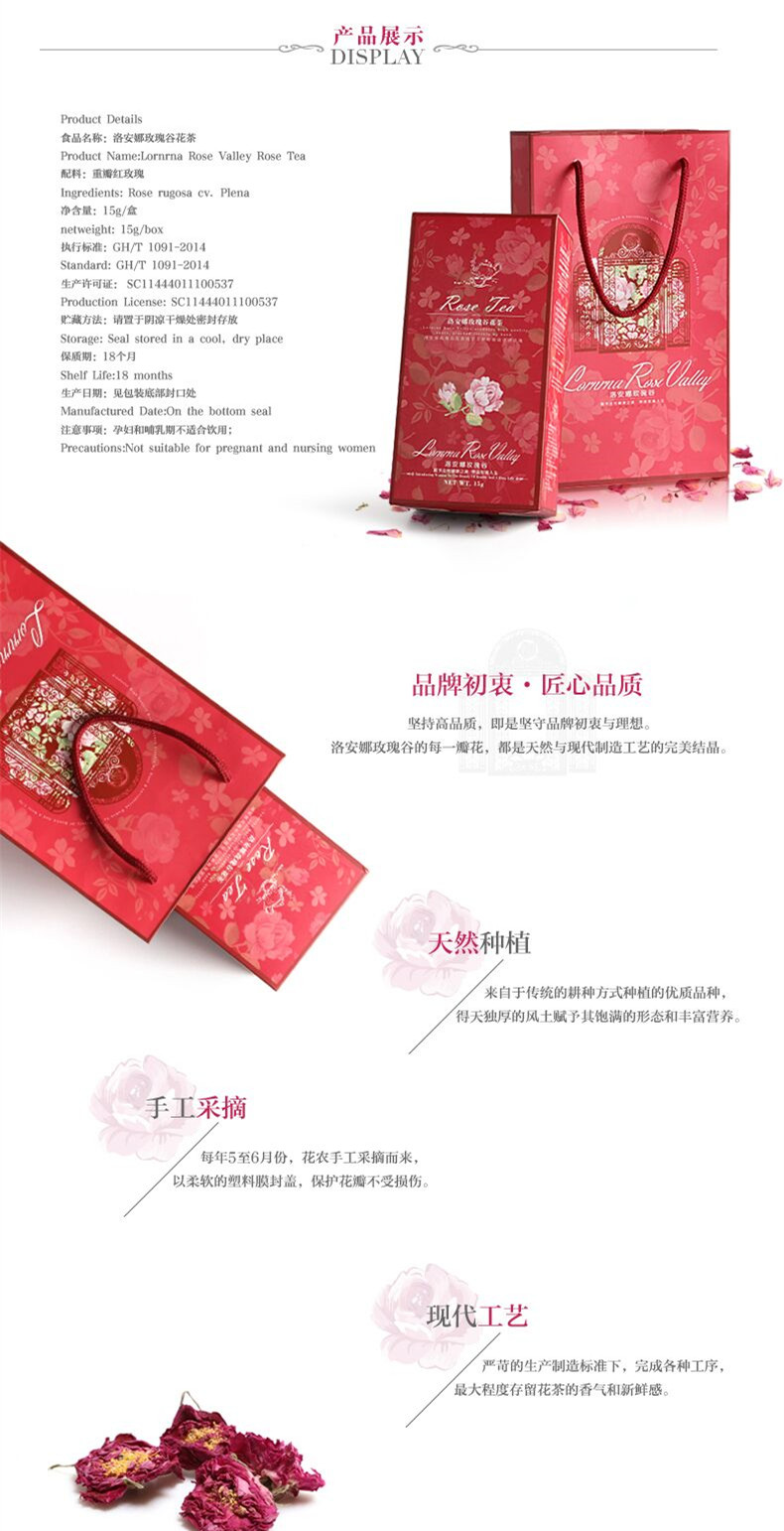 天然种植:洛安娜玫瑰谷花茶原材料,来自以传统的耕种方式种植的优质品种。