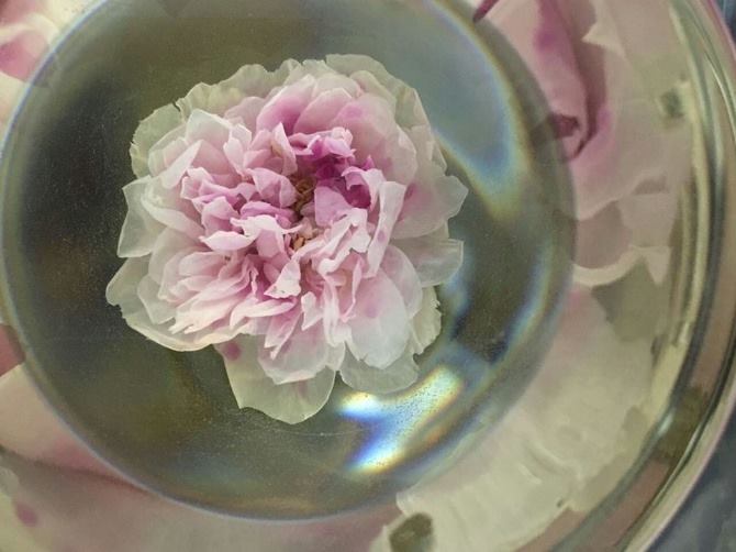 色:整朵玫瑰在杯中绽放,由紫变粉,你仿佛看见了它生长的风土——阳光、浪漫之地。