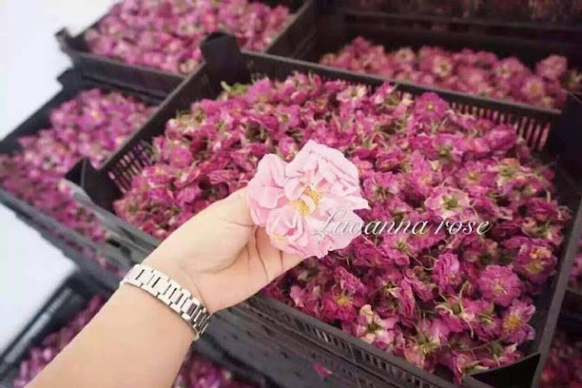 手工采摘:每年5至6月清晨,花农们都以手工采摘最新鲜的玫瑰花瓣;以柔软的塑料膜封袋,保护花瓣不受损伤。