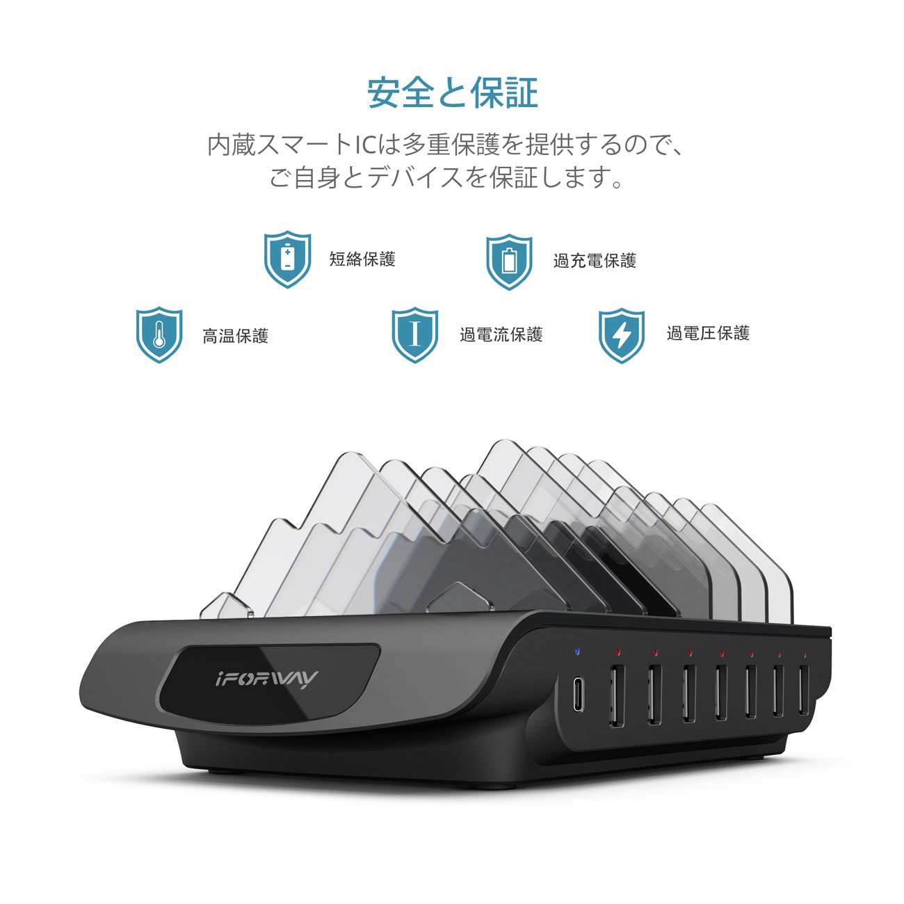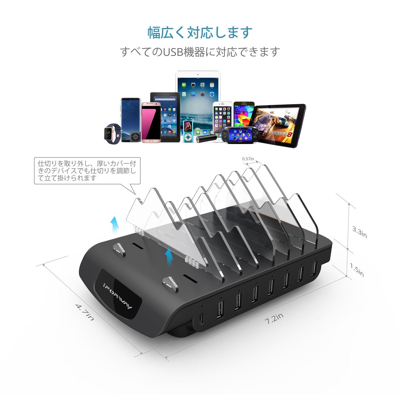 Everything has 8 charging ports, so even if there are many USB charging devices, it is no more troublesome to charge with an adapter attached one by one.