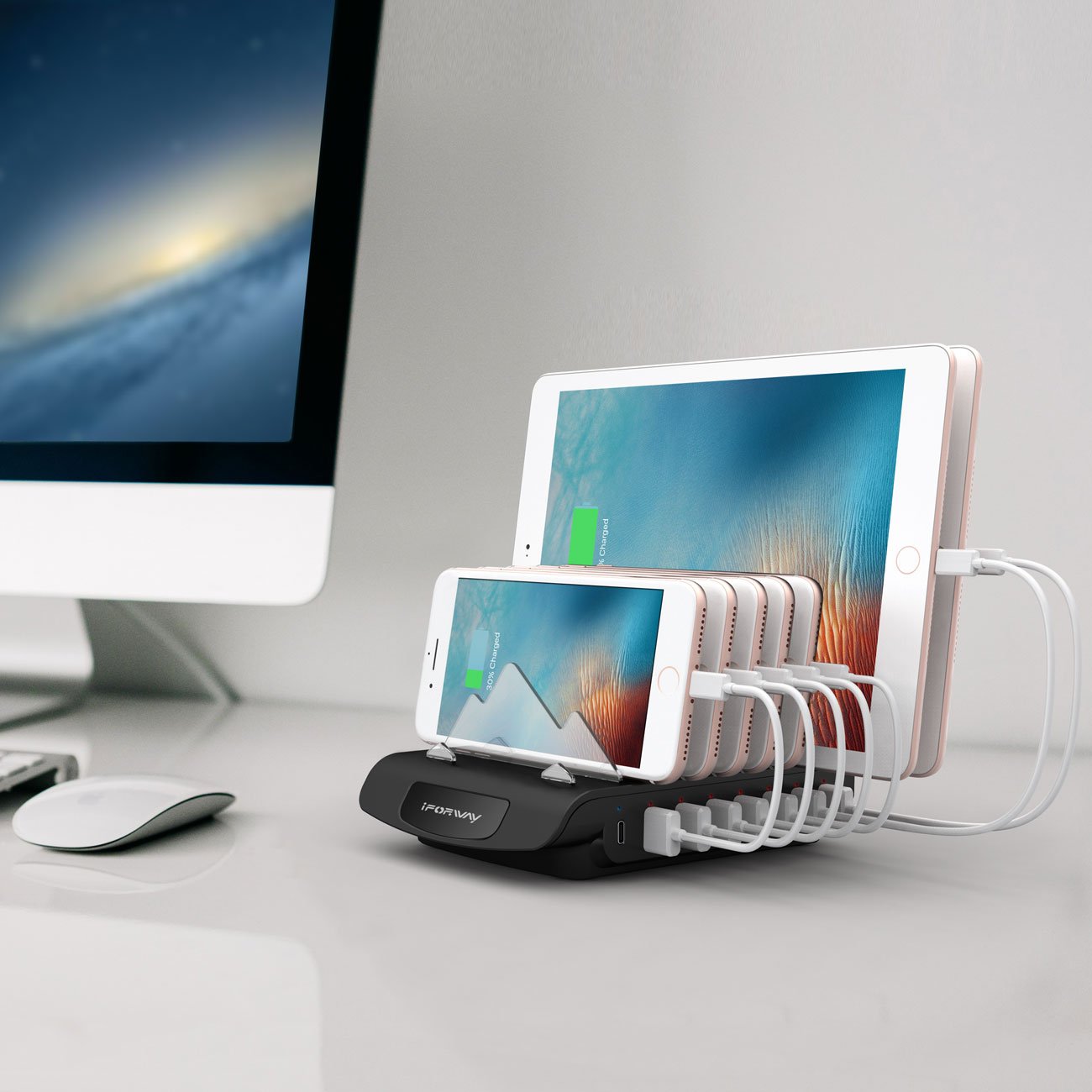 This USB charging stand fits somewhere where she shares tablet systems throughout the company.