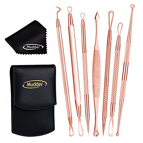 -. Title : Mudder 7 Pieces Comedone Extractor Blackhead Remover Pimple Whitehead Tool Acne Removal Kit, Rose Gold, Stainless Steel, with Case