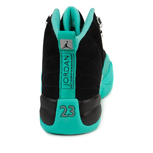 -. Title : Girls Air Jordan 12 Retro GG Black/Metallic Silver-Hyper Jade Fabric