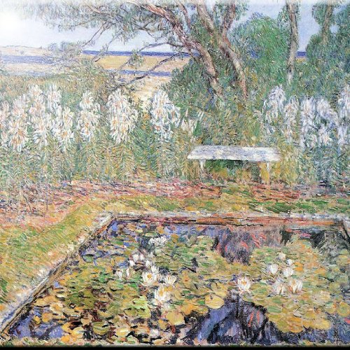 Rikki Knight RK-12intilec-2950 12" X 12" Childe Hassam A Garden on Long Island Design Ceramic Art Tile