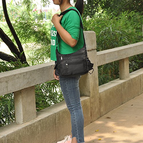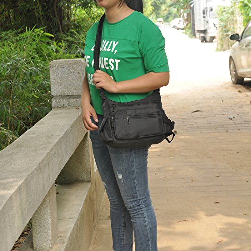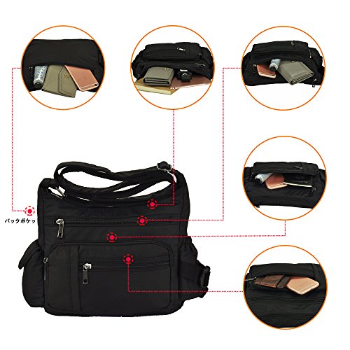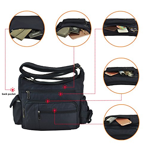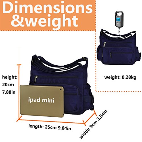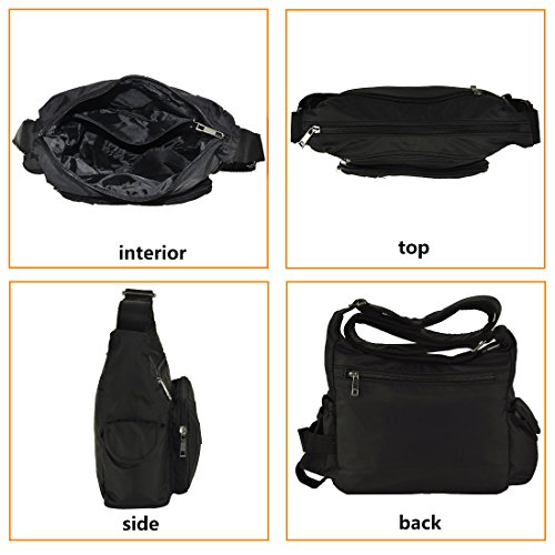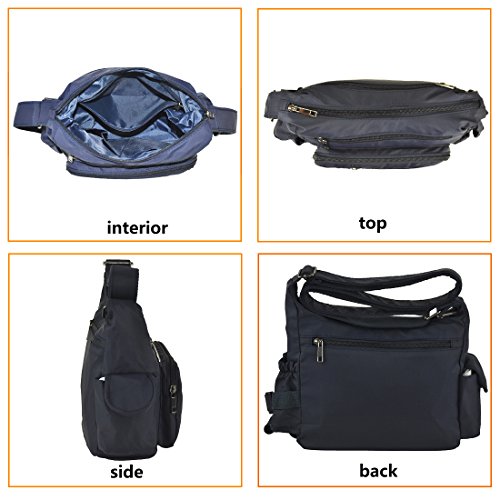 -. Feature : Classic zippers, smooth and easy to open and close. / Super practical: Made of practical water resistant and stain resistant nylon fabric that is durable lightweight high quality construction, easy to care for wipe clean or machine wash / It is big capacity. With 5 zippered pockets ,2 beside pocketsthere's room for it all, including passport, wallet, snacks, books, and more. / Dimensions:9.8" L x 7.9"H .x 3.5"W inch. Adjustable: 25~47inch / Every day and travel crossbody bag:Fashionable style, can be used as a handbag, shoulder bag or cross-body bag.with a variety of storage options & organization features, ideal for travel, errands, shopping, and diaper bag for parents on the go.